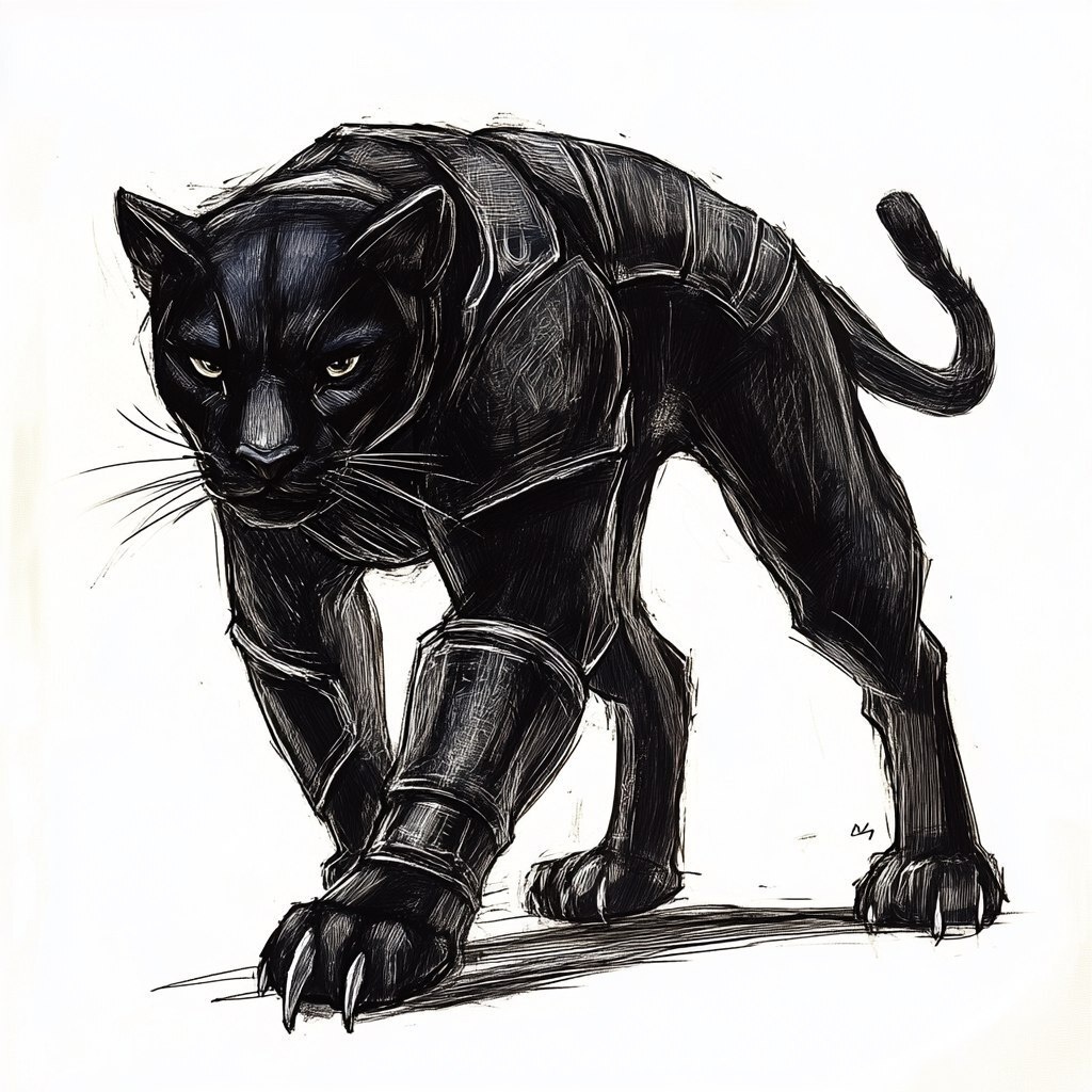 Создано на основе запроса: walking prowling panther animal black puma with medieval armor claws scribble style sketch
