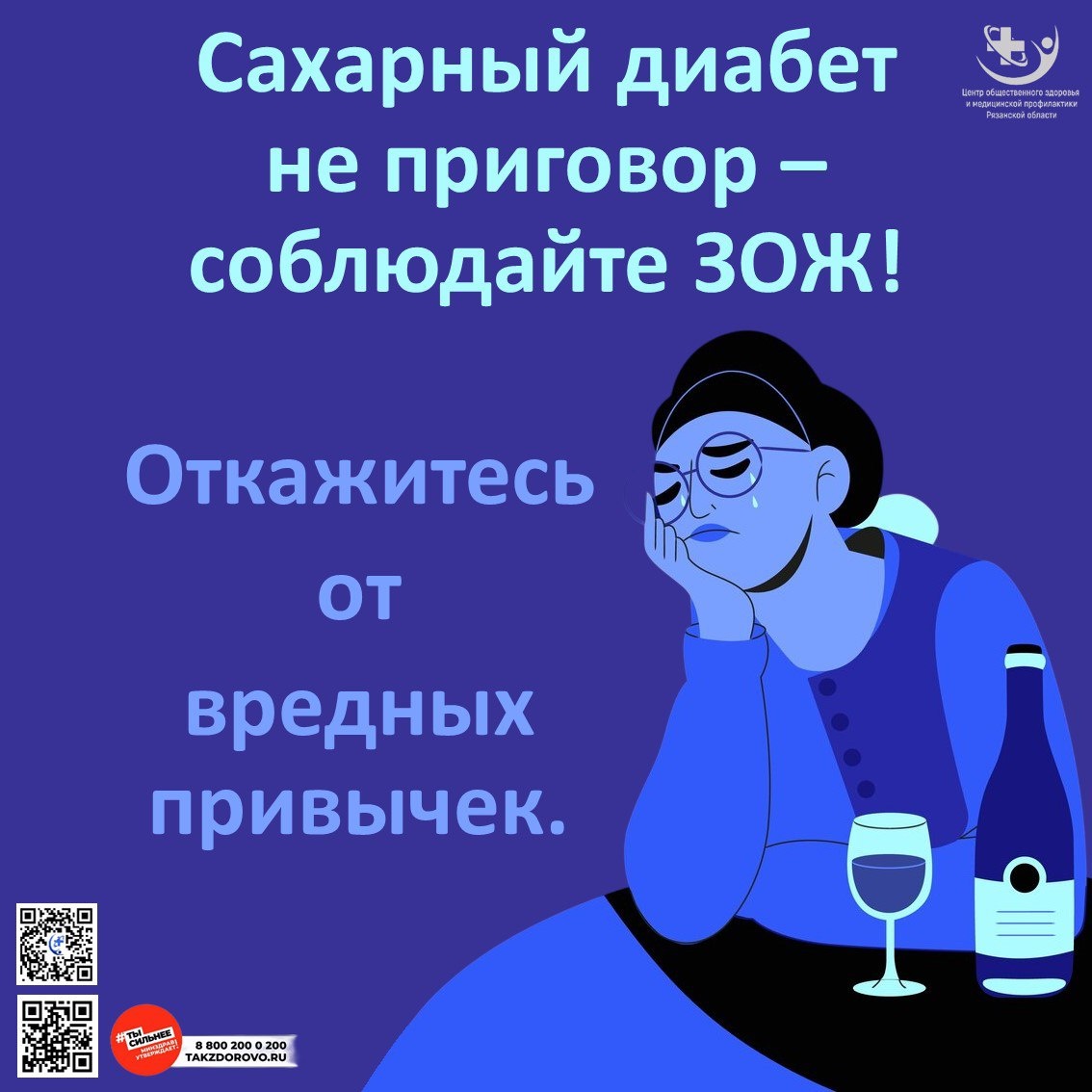 Неделя ЗОЖ: Жизнь с диабетом может быть полноценной! В рамках недели здорового образа жизни, инициированной Минздравом, важно напомнить: сахарный диабет — не приговор. При соблюдении принципов ЗОЖ можно жить активно и качественно! 🔹 Контролируйте питание – отдавайте предпочтение продуктам с низким гликемическим индексом 🔹 Регулярная физическая активность – помогает поддерживать нормальный уровень сахара в крови 🔹 Следите за весом – лишние килограммы увеличивают нагрузку на организм 🔹 Откажитесь от вредных привычек – курение и алкоголь усугубляют течение болезни 🔹 Регулярные обследования – систематический контроль показателей здоровья Соблюдение этих правил поможет не только контролировать диабет, но и предотвратить его развитие. Ваше здоровье – в ваших руках! #НеделяЗОЖ #ДиабетНеПриговор #ПрофилактикаДиабета #здоровоебудущее #здоровоебудущее62 #ЗдороваяРязань