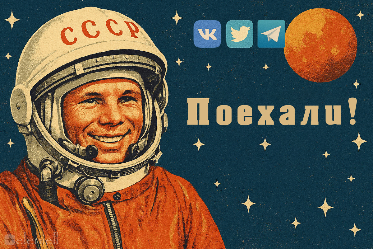 📆 12 апреля 1961 года. ⏱ 9:07 утра. Юрий Гагарин — первый человек в истории, который отправляется в космос. Давайте представим, что у Юры был телефон, интернет на орбите, аккаунт в одной из социальных сетей — и он вёл его в день первого полёта 🚀📱. Что бы он выкладывал? Что писал в сторис? Какие бы хэштеги использовал? 🧑🚀 @yuriy.g.official 📍 Байконур, СССР 🕘 08:45 "Всё готово. Скафандр жмёт, но держусь. Внутри — как в банке с тушёнкой, зато какие перспективы… 🚀 Настроение: выйти в космос. 🚫 Маме пока не говорите #поехали #звёздыждите #СССРвперёд" 📸: Селфи с космодромом на фоне и странный тюбик с надписью «Пюре мясное». 🎥 Сторис: Время запуска 📍 9:06 — «Три… два… один…» 📍 9:07 — «ПОЕХАЛИИИИ! 🚀🔥» 📍 9:10 — «Корабль вибрирует как стиралка, но держусь!» 📍 9:15 — Кружечка еды в невесомости: «Завтрак чемпиона» 📍 9:30 — «Земля из иллюминатора — как шарик новогодний. Красиво.» 💬 Подписчики: — @sergeykorolev_real (С. Королёв): «Держись, парень! Мы в тебя верим!» — @nikita.khru