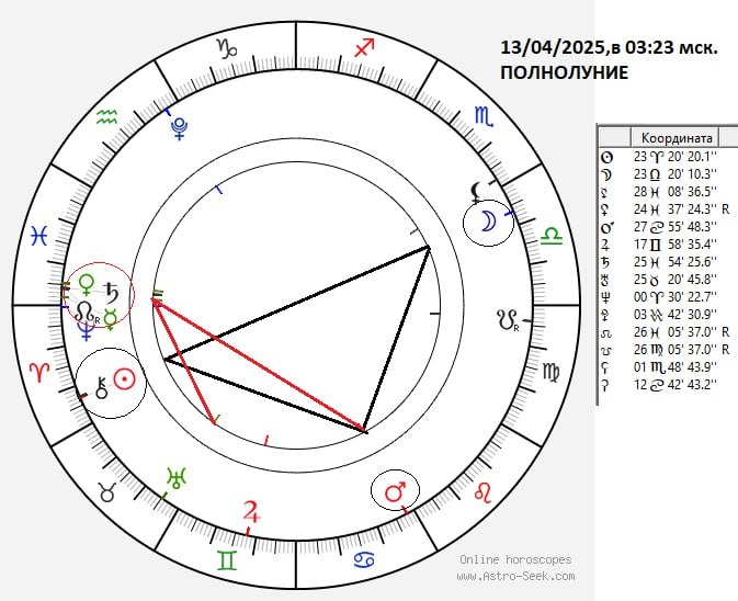 ПОЛНОЛУНИЕ 23°20'♎ Весов,в 03:30мск.