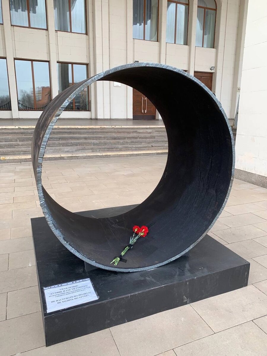 Перед входом в драмтеатр в Курске установили фрагмент газовой трубы, аналогичной той, по которой в марте этого года российские военные