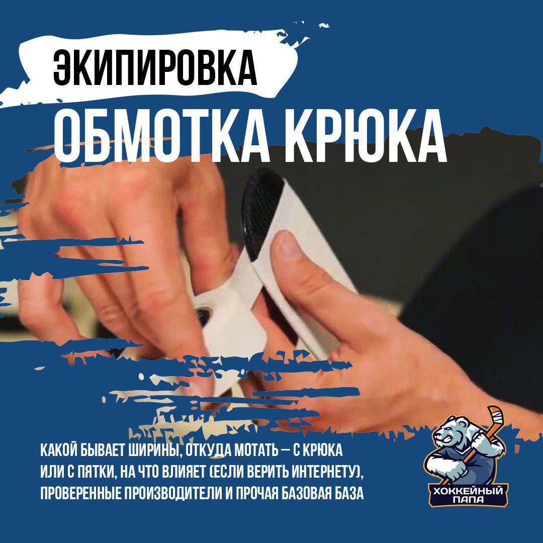 ОБМОТКА КРЮКА 🩹 Обмотка крюка выполняет две основные роли. Защищает перо от повреждений и увеличивает его цепкость, а на жаргоне — грип. Я знаю трёх проверенных производителей: Howies, Comp-o-stik и Renfrew. Сам пользуюсь последней, как-то больше зашла. Лента бывает стандартной и широкой, 25 и 38 мм соответственно. Ну или дюйм и полтора в имперской системе. Узкую проще наматывать, но больше стыков, у широкой всё наоборот. Классические цвета чёрный и белый. В теории на чёрной ленте теряется шайба, а белая помогает слиться крюку со льдом при условии, что он обмотан целиком 🧊 Мотать можно и с носка, и с пятки. При обмотке с носка шайба более плавно проходит по стыкам, даже если лента устала, набухла и забилась льдом. С пятки — стыки направлены против хода движения, а значит клюшка меньше тормозит об лёд 🐌
