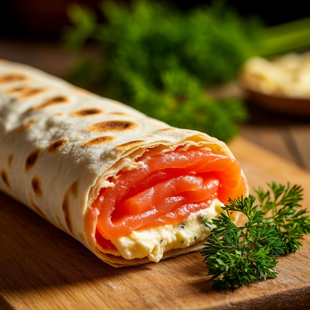 # Ролл из лаваша с красной рыбой, маслом и сливочным сыром Ингредиенты: - Лаваш тонкий армянский - 2 шт - Сливочное масло - 100-150 г - Красная рыба (форель или семга) - 400-500 г - Сливочный сыр (типа Филадельфия) - 150 г - Зелень (укроп или зеленый лук) - по вкусу Приготовление: 1. Подготовьте рабочую поверхность и разверните первый лаваш. 2. Нанесите тонкий слой сливочного масла по широкой стороне лаваша (примерно 2/3 площади). Это поможет лавашам лучше склеиться между собой. 3. Положите второй лаваш поверх первого и смажьте его более толстым слоем масла. 4. На край второго лаваша выложите: - Нарезанные тонкими ломтиками (0,5-0,7 мм) кусочки красной рыбы - Сливочный сыр, размазанный тонким слоем - Свежую зелень для украшения 5. Плотно заверните все ингредиенты в рулет, аккуратно прижимая лаваш. 6. Аккуратно обрежьте неровные края и докрутите рулет до конца. 7. Заверните готовый рулет в фольгу и отправьте в холодильник на 1-2 часа для пропитки. Подача: - Нарежьте рул