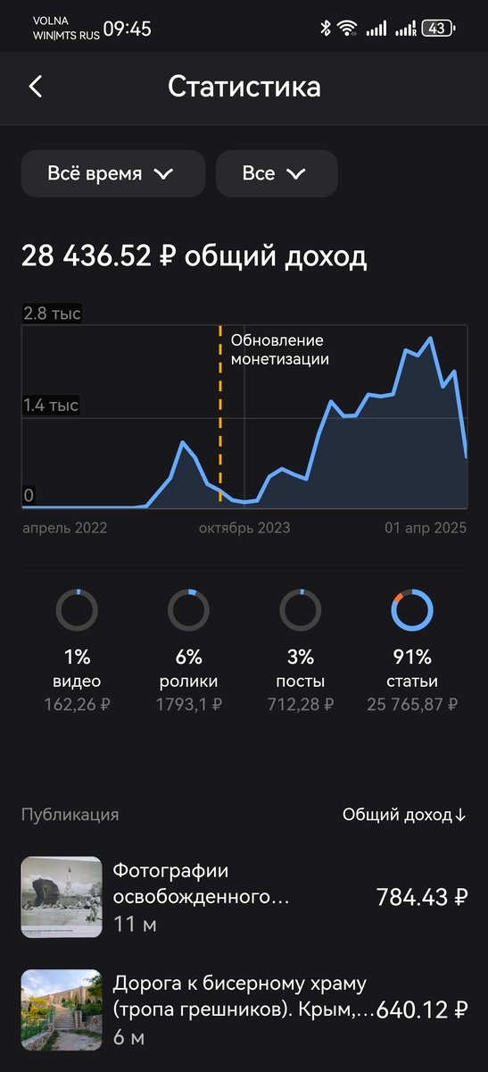 Здесь видно какая статья принесла мне больше всего денег.