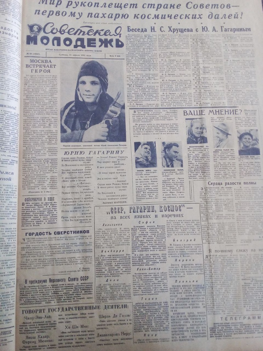 С днем космонавтики друзья! Предлагаю вашему вниманию вырезки из газеты "Советская Молодежь" от 15 апреля 1961 года.