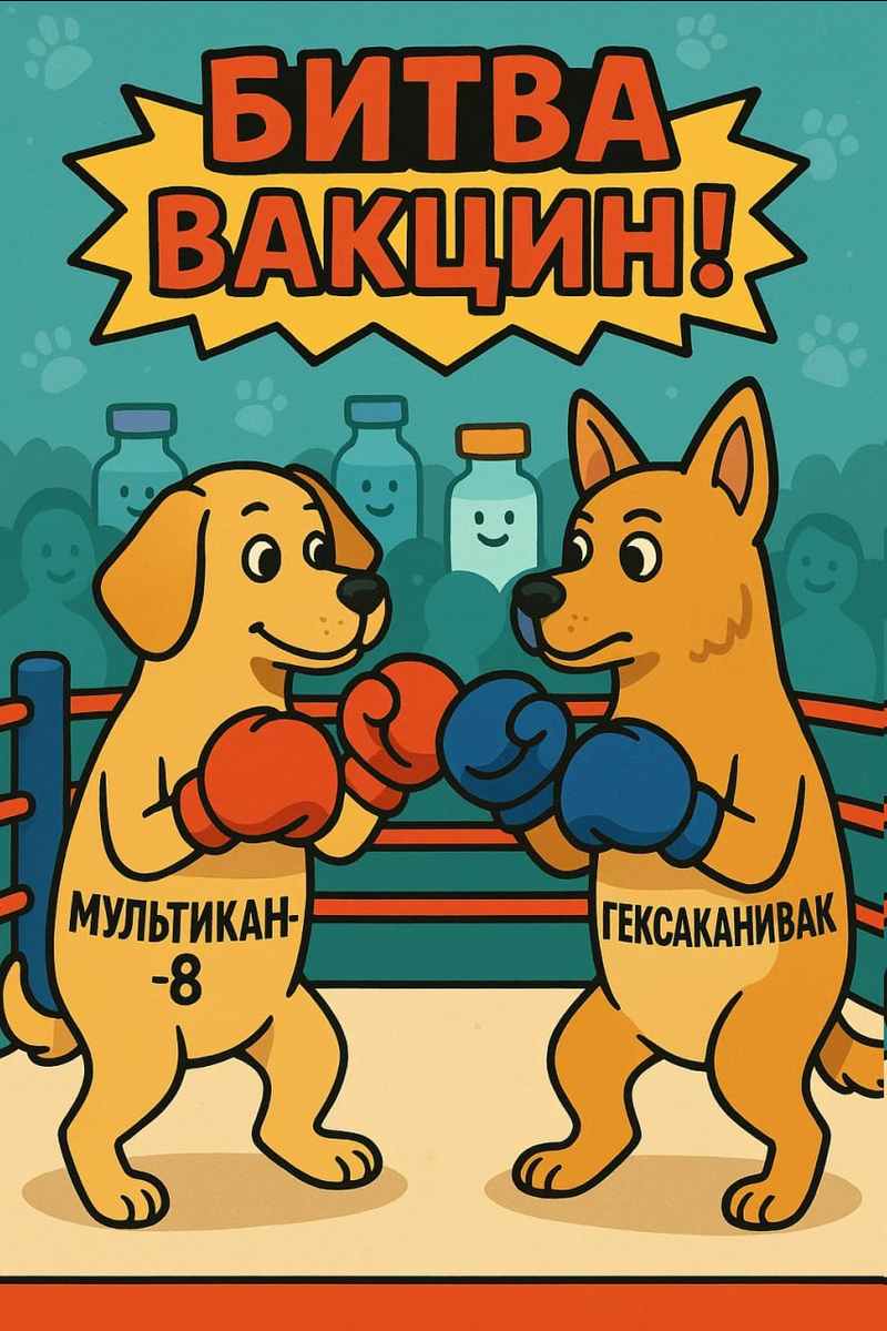 Сейчас когда на рынке просто нет вакцин, все еще есть выбор. Кто кого? Ваши ставки, уважаемые владельцы собак? 😄 Вы знакомы с Гексаканиваком? Сразу говорю — это не батл «кто лучше». Это батл «чем колоть, когда прививать надо, а выбора почти нет». Ну вы поняли. Мультикан-8 — ветклассика. Про него слышали даже те, у кого собака из приюта и ветеринар — дядя Вася с огорода. Гексаканивак —так же давно на рынке, но не у всех на слуху. 👉 В клиниках чаще стоит мультикан. Почему? Да просто потому что его проще достать и все к нему привыкли. Обе вакцины защищают от стандартного набора собачьих ужасов: чумы, гепатита, парвоэнтерита, парагриппа и двух лептоспир. бешенства. Отличия могут быть в штаммах — но кто из владельцев реально читает про это? (Спойлер: 1 из 50. И это мой любимый клиент. Мы с ним читаем аннотации вместе, как сценарий к триллеру и перекидываемся исследованиями.) 🔹 Раунд 3: побочки и переносимость Вот тут честно: научных сравнений нет, а мой клинический опыт — это не статис
