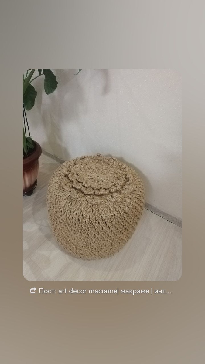 🛋️ Опрос: В какой технике вы бы предпочли пуф? 🧶 1. Интерьерное вязание – уютные, мягкие и теплые пуфы, которые идеально впишутся в любой интерьер! 2. Макраме – стильные и оригинальные пуфы, которые добавят нотку boho и текстурности в ваше пространство!