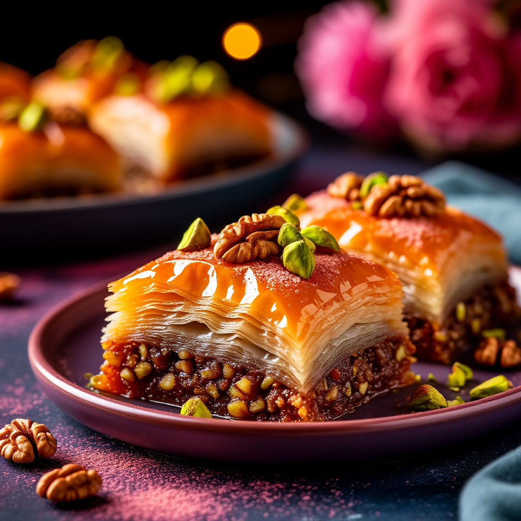 # Пахлава с грецкими орехами и фисташками Время приготовления: 1 час 30 минут Порций: 8-10 #Ингредиенты: - Тесто фило - 1 упаковка - Грецкие орехи - 250 г - Фисташки - 250 г - Сливочное масло - 200 г - Сахар - 200 г - Мёд - 150 г - Вода - 150 мл - Корица - 1 ч.л. #Пошаговый рецепт: 1. Разогрейте духовку до 180°C. 2. Измельчите грецкие орехи и фисташки (часть фисташек оставьте для украшения целыми). 3. Смешайте измельчённые орехи с 150 г сахара и корицей. Масса должна оставаться рассыпчатой. 4. Растопите сливочное масло. 5. Подготовьте противень с пергаментом. Разморозьте тесто фило и накройте его влажным полотенцем. 6. Выложите первый слой теста на противень, смажьте маслом. 7. Чередуя слои теста и начинки, выложите: - 5 слоёв теста с начинкой между ними - 6 верхних слоёв только теста 8. Смажьте верхний слой маслом и разрежьте пахлаву на ромбы. 9. Выпекайте 45-50 минут до золотистого цвета. 10. Приготовьте сироп из воды, 50 г сахара и мёда, прокипятив 10 минут. 11. По