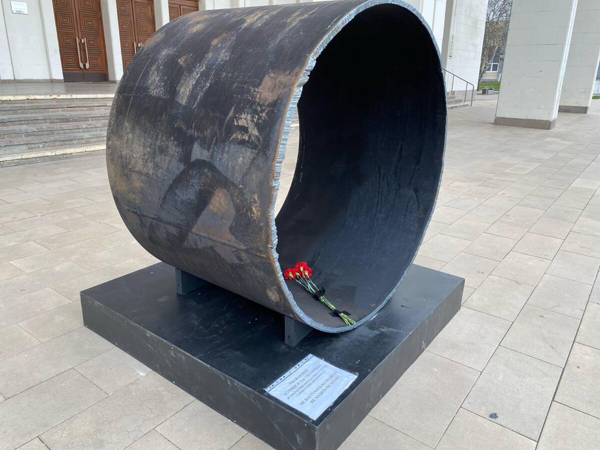 В Курске установили арт-объект в виде фрагмента трубы. Он должен символизировать операцию, в ходе которой российские военные вошли в Суджу.