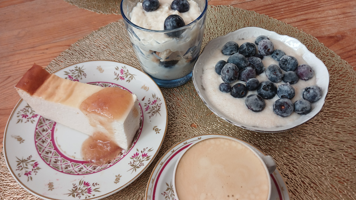 На завтрак сварила манку из полбы, была творожная запеканка и с вечера сделала а ля мильфей. В кашу добавляла голубику, к запеканке - персиковый джем. Мильфей из слоеного теста, заварного крема и голубики На обед суп овощной с фрикадельками, скрэмбл и овощи Потом еще кофейку попила. К кофе - мильфей и конфетка На ужин тушила говядину по-мароккански с сухофруктами, на гарнир - кускус и овощи Меню год назад Говядина по-мароккански Из запасов: кускус, чернослив, голубика, слоеное тесто, манка