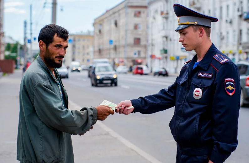 Участковый увидел как свежие купюры блеснули в руках у нелегала и принял единственное правильное решение.