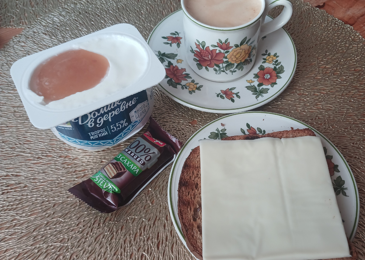 Завтрак сегодня из того, что было под рукой: творог мягкий с ложкой персикового джема, тост с сыром моцарелла, кофе и конфетка Обед такой же, как и вчера: гороховый суп и фунчоза с кальмарами потом еще попила кофе с конфетами. Обожаю эти конфеты! На ужин запекала голени индейки. Маринад: кетчуп домашний, горчица и абрикосовый джем. Лень было мед доставать. 😊 Голени индейки из Магнита очень мне понравились. Вообще не было воды при их запекании! Просто отличные! Я себе положила самую маленькую голень, она 350 г весила (но там кость огромная), мужчинам побольше по размеру были. Они съели полностью, я частично осилила. У меня на гарнир овощное рагу (овощи собрала, что были в морозилке -горошек, стручковая фасоль, кабачки плюс морковь из холодильника), у остальных на гарнир гречка. Гречки сварила побольше, чтобы и на завтрак завтра была еда. И параллельно с индейкой еще буханку хлеба испекла. Меню год назад