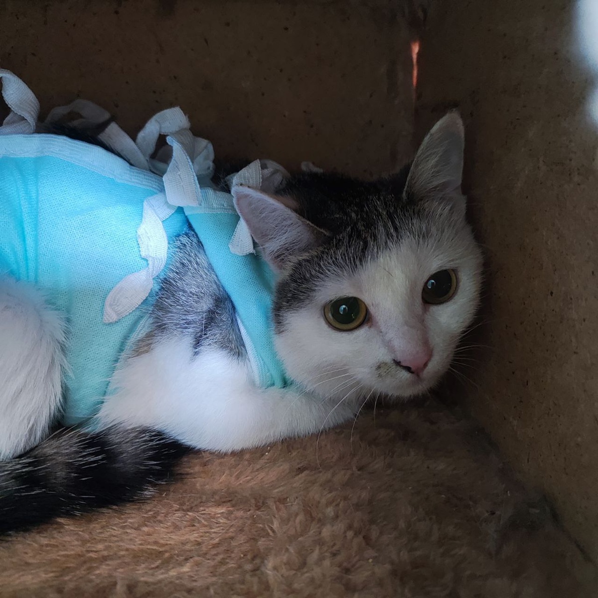 Эта малышка родилась и выживала в подвале. Мама кошка ушла, весь помет котят погиб, повезло лишь одной кошечке.