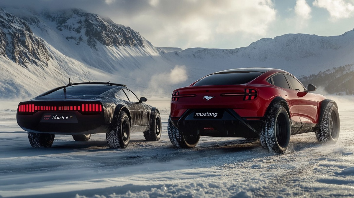 Создано на основе запроса: carcore: "mustang Mach e" next to a mustang ice vehicle