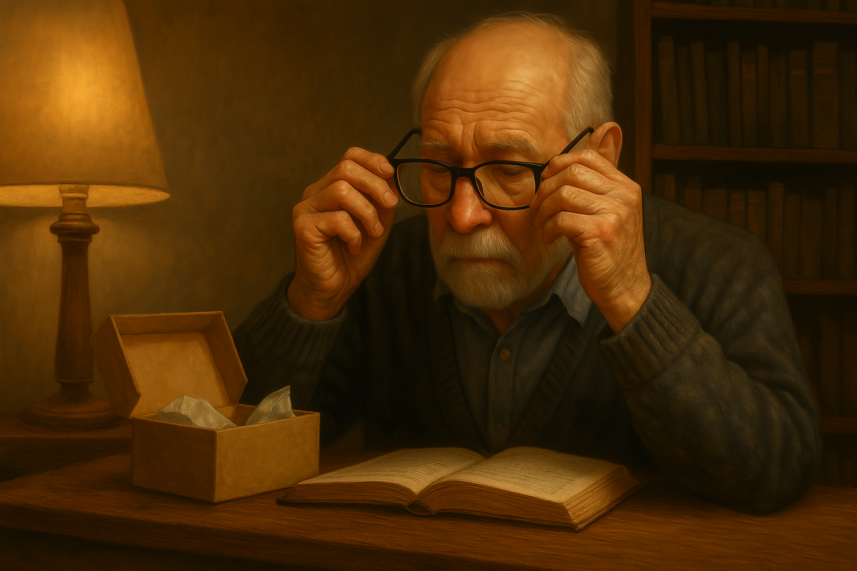 С тех пор он начал наблюдать. Дед всё чаще смотрел в стену, а не в книгу. Читал ярлыки на банках, прижимая их почти к носу. И однажды Саша увидел, как дед достал томик Чехова, провёл по обложке пальцем… и положил обратно.