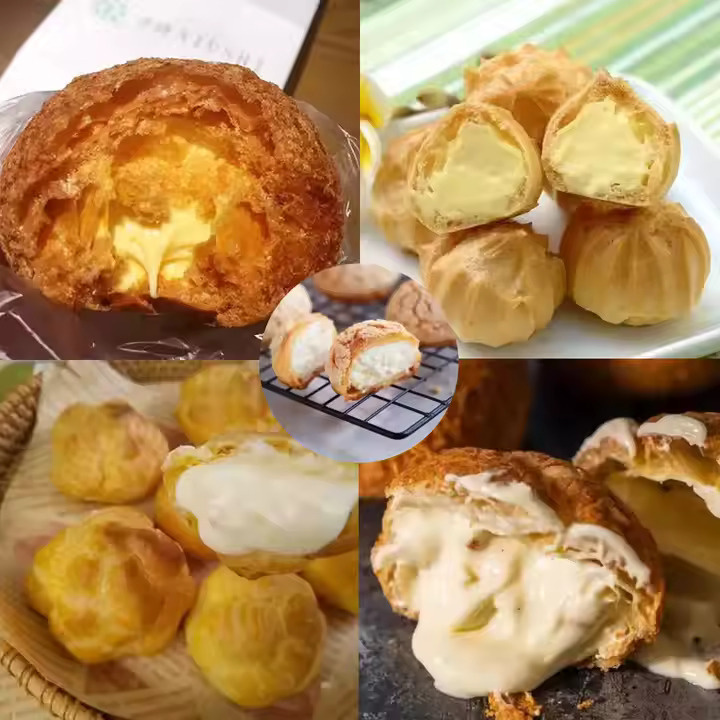 - Начинка: Помимо заварного крема, можно использовать взбитые сливки, крем "Дипломат" или шоколадный ганаш.