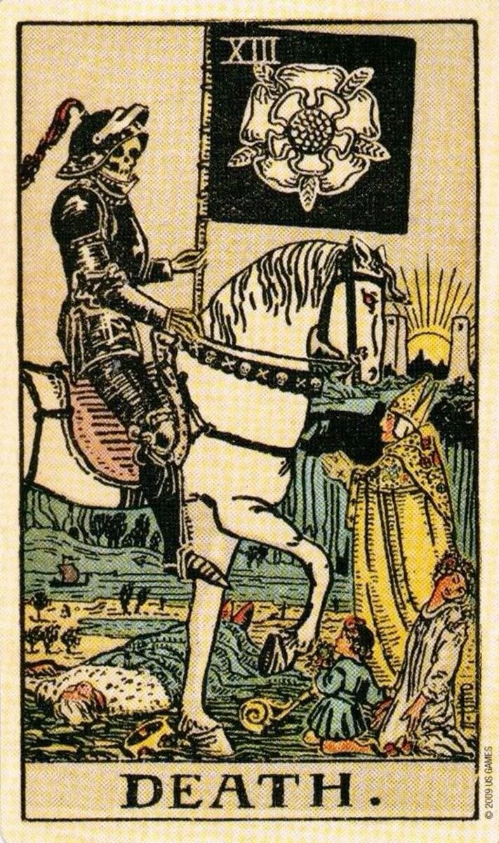 В Таро Смерть — это не про физическую гибель, а про глубинную трансформацию 🌀. Это сакральный переход, внутренний алхимический процесс, через который мы проходим в поворотные моменты жизни. В Таро Тота Аркан XIII — один из самых насыщенных по смыслу и символике, он раскрывает архетип освобождения от старого и рождения нового. Скелет с косой, танцующий среди пузырей — не пугающий монстр, а жнец нового начала 🌱. Он разрушает отжившее, чтобы расчистить путь для нового. Под его косой рождаются пузыри — символы будущих форм жизни. Это танец трансформации, а не уничтожения. Аркан связан со знаком Скорпиона, и в нём заключён глубокий аллегорический путь: Это путь души через боль, понимание и прозрение. Только пройдя все стадии, можно достичь истинной внутренней свободы. Буква Нун в иврите означает «рыба» 🐟 — символ подводного существования, жизни в глубинах подсознания. Она отсылает к историям вроде Ионы, проглоченного китом, или Христу как ловцу душ. Это образ духовного путешествия вглубь