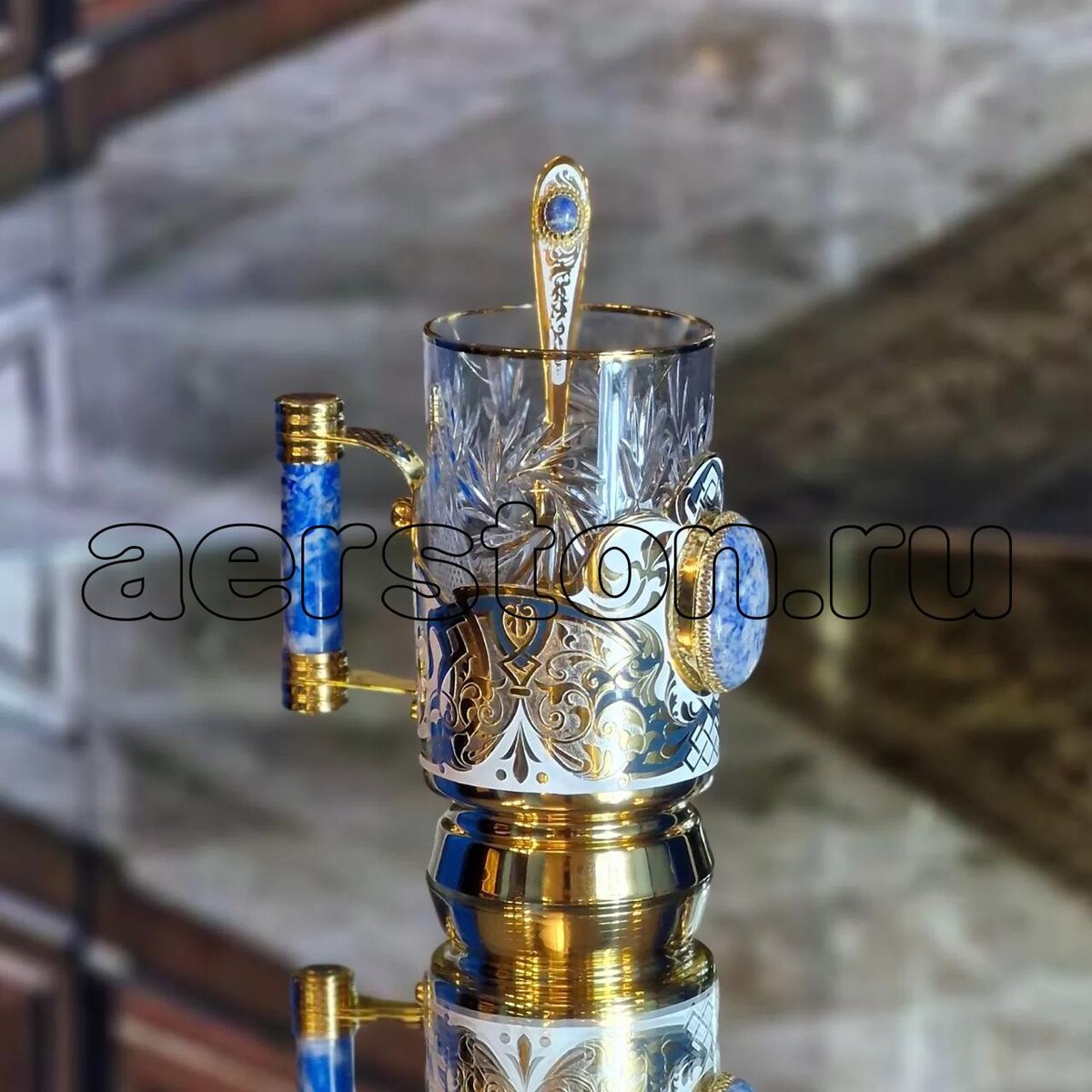 Подстаканник ЛАЗУРНОЕ ВЕЛИКОЛЕПИЕ ⨳ Материалы: лазурит, ювелирная латунь, никель, золото, хрусталь. ⨳ Габаритные размеры: подстаканник высота - 125 мм, длина ложки - 135 мм. ⨳ Изделие укомплектовано: подарочной коробкой из натуральных пород дерева. ⨳ Авторская ручная работа. ✔️Подпишись на наш канал ✍️ ✔️Жми на палец вверх! 👍 🔸 Интернет магазин 📱 Телеграм канал 🔹 Дзен