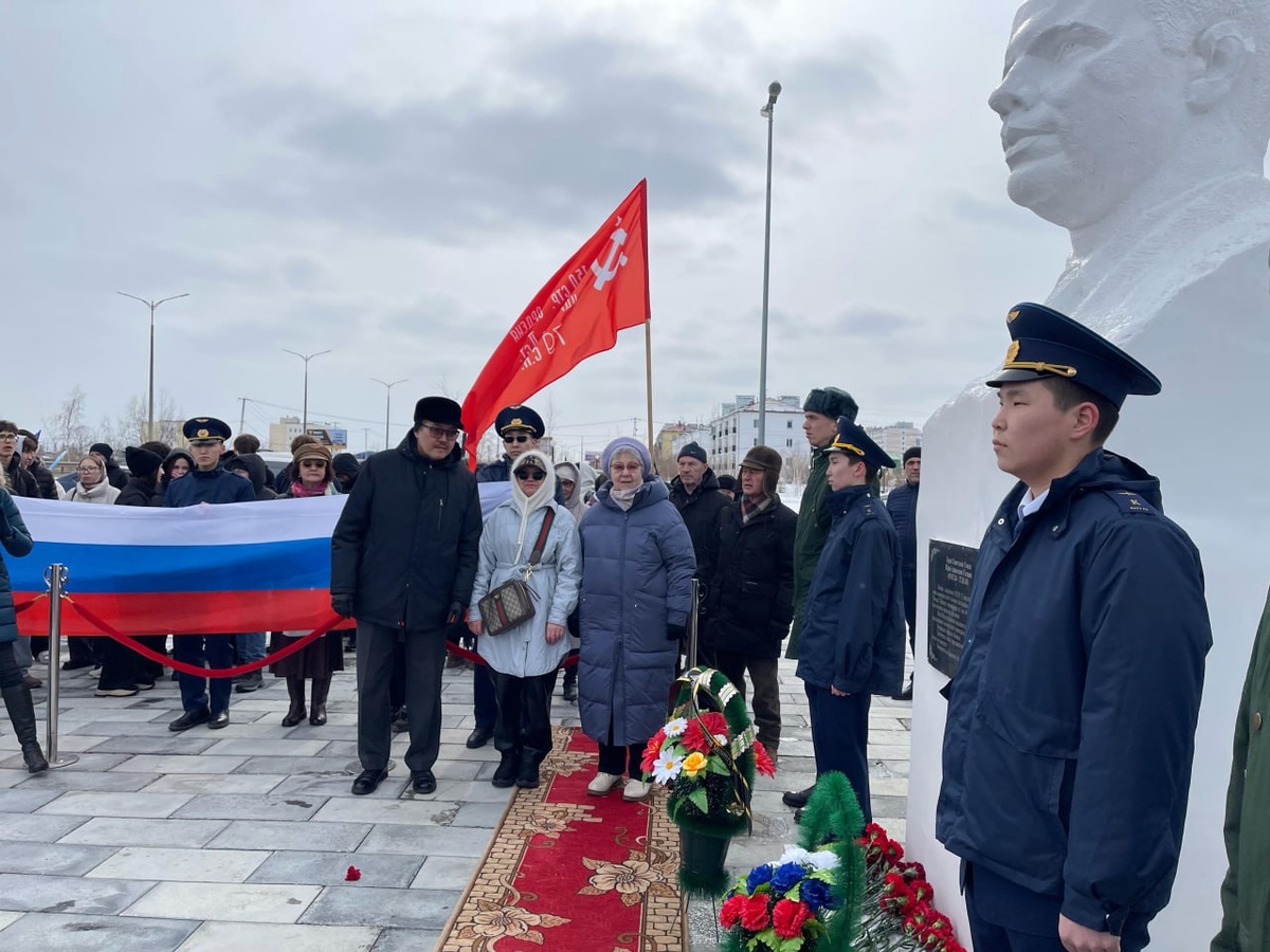 π Π’ΠΎΡΠΆΠ΅ΡΡΠ²Π΅Π½Π½ΡΠΉ ΠΌΠΈΡΠΈΠ½Π³, ΠΏΠΎΡΠ²ΡΡΠ΅Π½Π½ΡΠΉ ΠΠ½Ρ ΠΊΠΎΡΠΌΠΎΠ½Π°Π²ΡΠΈΠΊΠΈ, ΡΠΎΡΡΠΎΡΠ»ΡΡ Π² Π―ΠΊΡΡΡΠΊΠ΅ ΠΠ° ΠΌΠ΅ΡΠΎΠΏΡΠΈΡΡΠΈΠΈ ΡΠΎΠ±ΡΠ°Π»ΠΈΡΡ ΠΏΡΠ΅Π΄ΡΡΠ°Π²ΠΈΡΠ΅Π»ΠΈ Π²Π»Π°ΡΡΠΈ, ΠΌΠΎΠ»ΠΎΠ΄Π΅ΠΆΠΈ, ΠΎΠ±ΡΠ°Π·ΠΎΠ²Π°ΡΠ΅Π»ΡΠ½ΡΡ