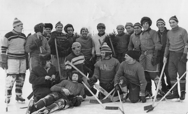 А началось всё гораздо раньше. В 1960 году хоккей (с мячом и с шайбой В.Н) вошёл в обязательную программу физической подготовки членов первого отряда космонавтов. На начальном этапе остро ощущалась нехватка инвентаря. Чуть позже шефство над космонавтами взял на себя армейский клуб ЦСКА. Так у них впервые появились ярко-красные шерстяные свитера и более-менее качественные клюшки. Играли на открытом воздухе, поэтому тёплой раздевалкой для всех служил простой автобус, привозивший ребят на тренировку. Играли все с удовольствием и большим азартом, а первыми хоккейными болельщиками стали жители Звёздного городка, радостно кричавшие во время игры «Шайбу! Шайбу!». Деление на команды происходило незамысловатым способом: Валерий Быковский и Борис Волынов, увереннее остальных владевшие хоккейными навыками, по очереди выбирали игроков в свою команду. Ну а капитаном сборной космонавтов «НАШИ» был Юрий Гагарин, не выделявшийся на фоне остальных филигранной техникой, однако, умевший мастерски расшевелить партнёров по команде. Интересна история названия сборной космонавтов. «Приехали ребята из ЦК комсомола сыграть в хоккей», - вспоминал фотограф Борис Смирнов. «Выяснилось, что почти все одинаково одеты. Тогда Гагарин взял кусок мела и на груди у всей команды космонавтов написал «НАШИ». Состав был более чем внушительный. Ворота защищала первая женщина-космонавт Валентина Терешкова. Именно её отобрали из нескольких сотен претенденток на полёт за твёрдый характер и выносливость. Качества, которые и в хоккее являются отнюдь не лишними. Умело управлялся с клюшкой Герман Титов, отправившийся на орбиту в возрасте 25 лет. Титов был первым, кто провёл в невесомости больше суток. В обороне надёжно играл Павел Попович, в 1962 году совершивший первый в мире групповой полёт двух пилотируемых кораблей, совместно со своим партнёром по хоккейной команде Андрияном Николаевым. Выступал в «НАШИх» ещё один первооткрыватель – Алексей Леонов. 18 марта 1965 года Леонов стал первым в мире космонавтом, побывавшим в открытом космосе. Вне космического корабля он пробыл 12 минут и 9 секунд. Это событие стало настоящей сенсацией, однако, детали драматических событий выхода Леонова в открытый космос стали известны только много лет спустя. Само пребывание в космосе прошло удачно, но вот вернуться на борт Леонову удалось далеко не сразу. Из-за перепада давления его скафандр увеличился в размерах так, что советский космонавт никак не мог протиснуться через узкий люк. Тем не менее, сохраняя хладнокровие он смог выпустить часть скопившегося воздуха через клапаны в скафандре, после чего благополучно вернулся на борт корабля «Восход-2». И всё шло хорошо пока космонавты делали свои первые шаги в хоккее. Травмы посыпались как из рога изобилия в тот момент, когда игроки почувствовали себя на льду раскованнее. Броски стали сильными и точными. Вот тогда, после недолгих раздумий руководство приняло решение вывести хоккей из перечня спортивных дисциплин. Вердикт прозвучал лаконично: «В связи с высокой травмоопасностью». С тех пор, на протяжении десятилетий хоккеисты сборной СССР, отправляясь на различные международные соревнования, традиционно наведывались в Звёздный городок, а космонавты из хоккеистов превратились в заядлых болельщиков. У Юрия Гагарина в Лужниках было «своё» 