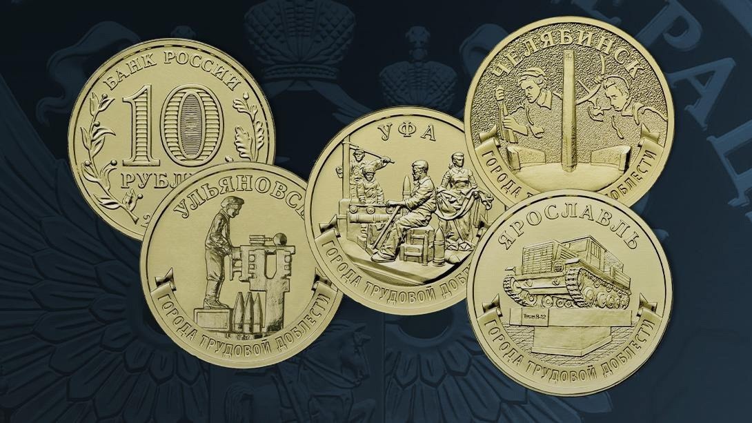 ЦБ выпустил лимитированные монеты номиналом ₽10. Они посвящены «Городам трудовой доблести».