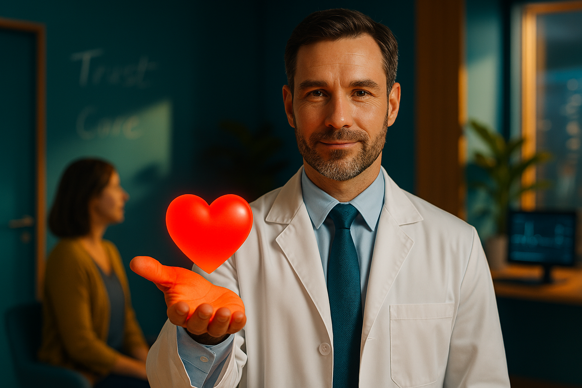 Пациент приходит с надеждой и страхом. И первое, с чем он сталкивается — не врач. А тон сайта, оформление кабинета, голос в трубке, фотографии персонала, фраза на баннере. Всё это не информация. Это — сигналы.