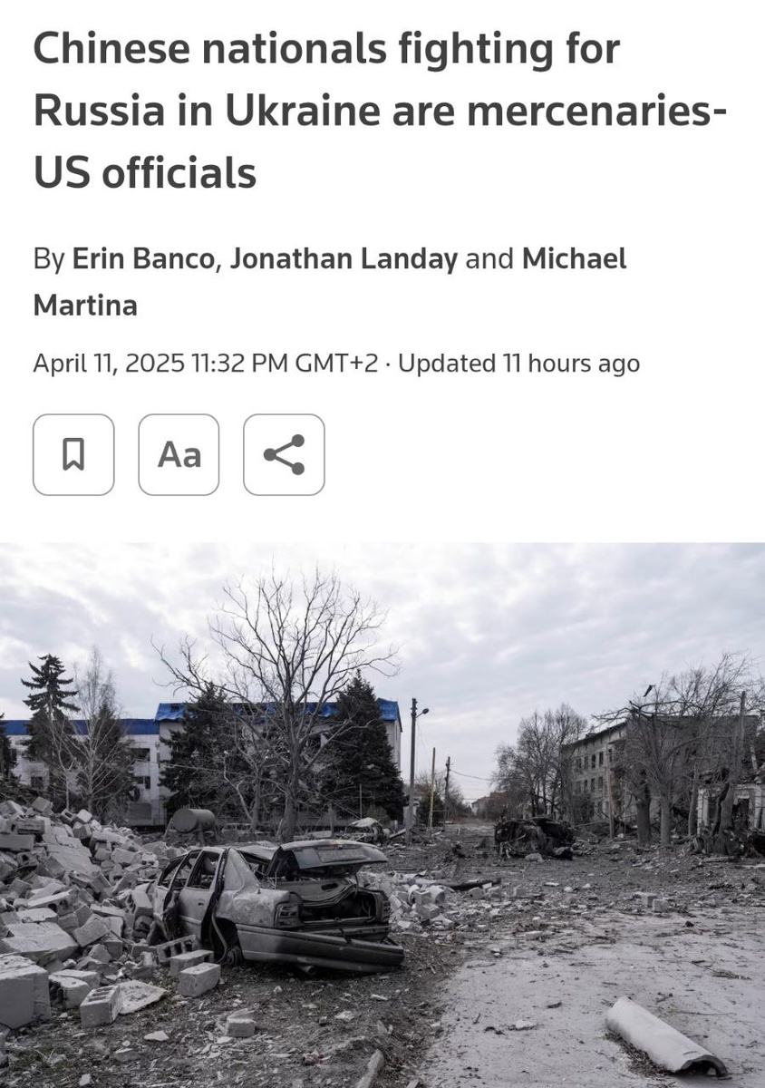 Агентство Reuters со ссылкой на чиновников США пишет, что «все китайцы, которые воюют на стороне России, являются добровольцами и не имеют отношения к китайскому правительству». Как говорится в публикации, по версии американских официалов,, офицеры китайской армии якобы присутствуют в тылах российской группировки, но сами в боевых действиях участия не принимают. Агентство утверждает, что воюющих китайцев в российской армии якобы чуть более сотни. «Они принимают участие в боях за деньги как наёмники», приводит агентство двух неназванных американских чиновников. «Официальные лица США заявили, что китайские бойцы, по-видимому, имеют минимальную подготовку и не оказывают заметного влияния на военные операции России. При этом, находящиеся в отдалённых тыловых районах китайские офицеры пытаются извлечь тактические уроки из войны», – говорится в публикации.. Напомним, истерия вокруг того, что Китай якобы посылает своих военных для участия в боевых действиях против Украины – это совсем свежий