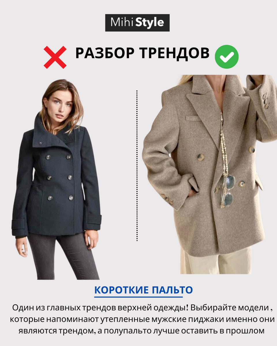 Тренды в деталях: почему старые вещи могут выглядеть устаревшими Мода циклична, и многие вещи из прошлого возвращаются в тренд. Но если достать пальто десятилетней давности или балетки из 2010-х, можно заметить: они выглядят совсем не так, как современные аналоги. В чем секрет? **Актуальность трендов кроется в деталях** — именно они превращают старую вещь в модную или, наоборот, выдают ее возраст. Почему не все "возвращающиеся" тренды — это старые вещи Сейчас в тренде не просто укороченные модели, а пальто, напоминающие утепленные мужские пиджаки— с четким кроем, структурной тканью и минималистичным дизайном. Полупальто с романтичными линиями, популярные 10 лет назад, уже не соответствуют актуальной эстетике. В 2024-2025 году балетки носят с носочками, а их форма изменилась: квадратный мысок и перемычка в стиле "Мэри Джейн" создают современный силуэт. Старые закругленные модели без этих деталей выглядят старомодно. Юбка-карандаш теперь макси-длиныс разрезами, а плиссиров
