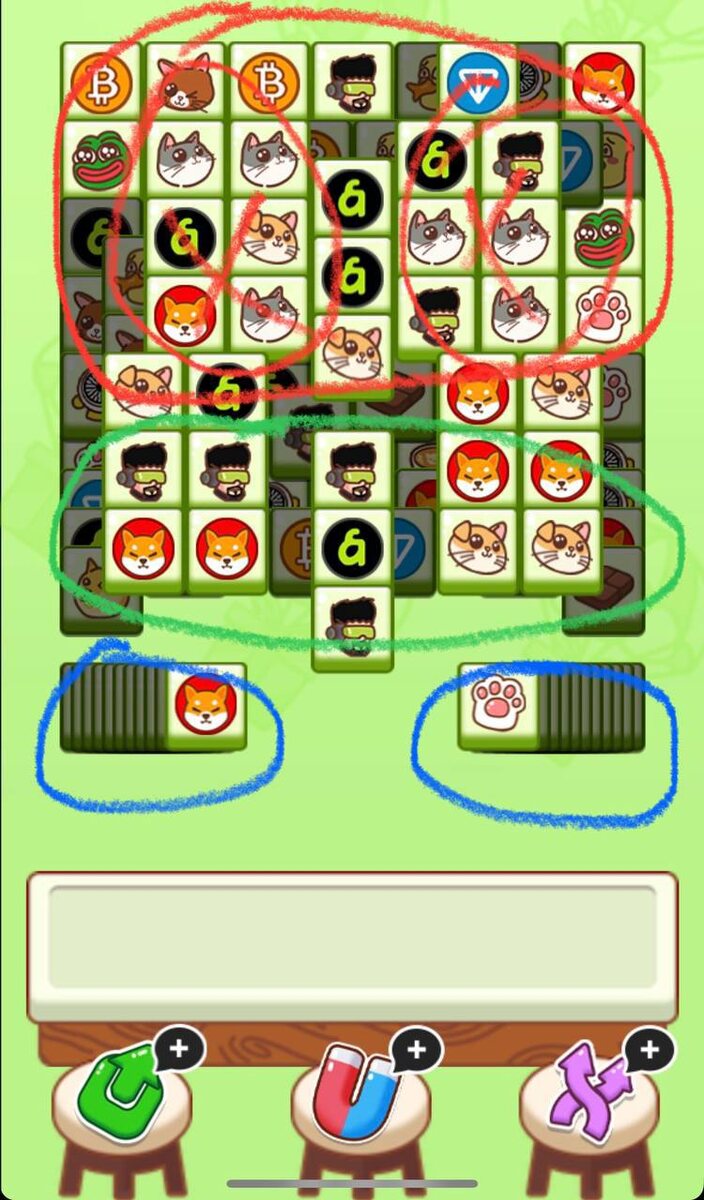 Как побеждать в 🪙 Cattea 12 апреля? 1) Наша главная цель сегодня - это красная зона по сверху. Разбираем красную зону в количестве 15 триплетов, далее подключаем Синие зоны. 2) После разбора 15 триплетов, подключаем синие зоны. Разбираем в соотношении 2 к 1 - 2 карты из красной зоны, 1 из синей зоны. 3) Зеленая зона сегодня внизу, старайтесь держать зеленую зону до поздней игры. Всем удачи!