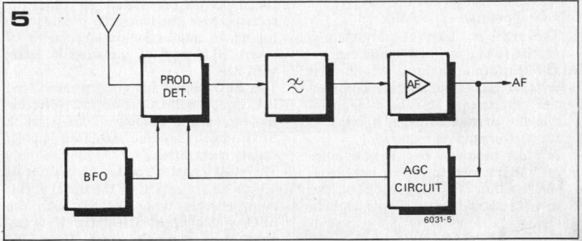 BFO построен на основе T6 и настроен на основе L2 и варикапа D13. Напряжение настройки варикапа получается из источника напряжения с температурной компенсацией, построенного на основе T12. T12 подключен как источник постоянного тока и подает ток через опорные диоды напряжения D8 и D9. Часть выходного напряжения, которая зависит от настройки P I, подается на варикапы D12 и D13. Частота BFO, таким образом, отслеживает частоту, на которую настроена входная цепь, поскольку PI изменяется для настройки приемника.