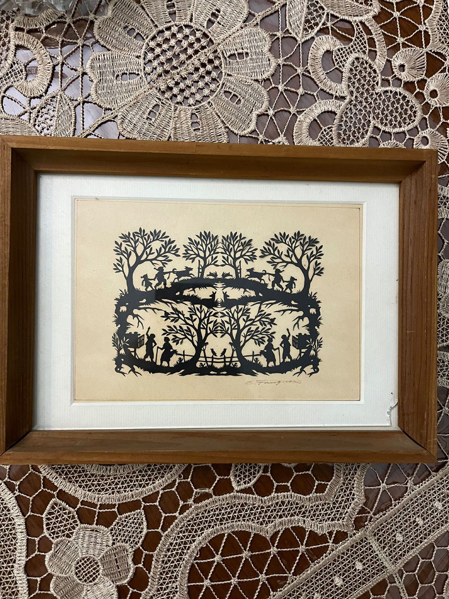 У меня когда-то жила соседка, она была из Швейцарии, они с её мужем снимали у наших родственников квартиру. И мы с ней общались. Она была художником, но не просто художником, а она вырезала тонкими ножничками картины из бумаги, потом оформляла их в полноценную картину. У меня даже есть одна её работа.