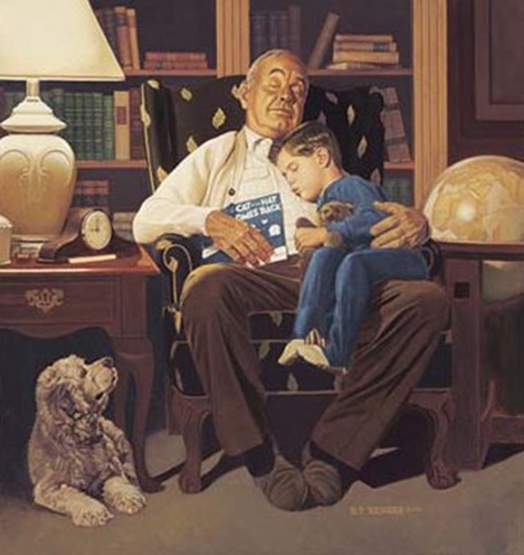 А на коленях деда, утомлённый