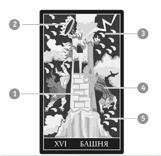 СИМВОЛИКА БАШНИ 1️⃣ Башня – символ человеческой гордыни. 2️⃣ Корона на Башне символизирует непризнание над собой ничьей власти. 3️⃣ Молния – «перст Божий», внешние обстоятельства, разрушающие то, что мы создали. 4️⃣ Падающие с башни люди – это Император и Жрец, намек на власть имущих и на высоты, с которых мы срываемся из-за своей гордыни и привязанности к материальному. 5️⃣ Черный цвет фона – знак того, что данный аркан обычно проигрывается как нБАШНЯ Эта карта катастроф, раскола, который создается в жизни или в психике человека. События, о которых рассказывает Башня могут вызвать разрушения, или напротив — открыть «портал» в новые измерения и в момент вознести до небес. Карта высокого напряжения, которая может зарядить энергией, или ударить током: «не подходи, опасно» ☠. С точки зрения каббалы, природа Башни — это путь между двумя противоположными центрами — Нецах и hод: 1. Нецах — центр эмоций; 2. hод — центр интеллекта. В этом аркане разум не просто встречается с