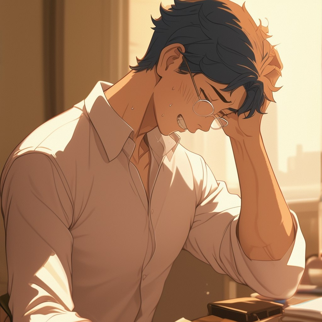 Создано на основе запроса: A close-up of a man who answers shyly and with a bashful expression. There is a gentle blush on his cheeks. His mouth is set in a small, awkward smile, and he is scratching the back of his head with one hand. He is wearing a simple white dress shirt with the top button undone and a jacket, and the soft lighting accentuates his expression. The background is blurred, the indoor environment of the seminar room, the focus is completely on his sweet, subdued reaction. animestyle, --- Автоперевод: Крупным планом человека, который застенчиво отвечает и с застенчивым выражением. Классно получилось? 🤔 https://dzen.ru/id/65c0c65c86e4f837c27b24d7 #ИИ #AI #нейросеть #midjourney #art