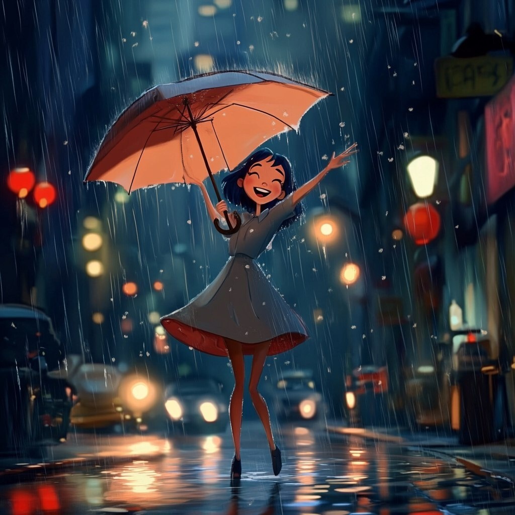 Создано на основе запроса: girl singing in the rain, animated character