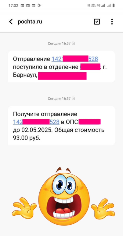Да и в целом, никаких посылок я не ждала, в добрых волшебников, желающих сделать внезапный приятный сюрприз не верю, в злых тоже, посему полезла в интернет проверять, не аферисты ли балуются от имени почты России.