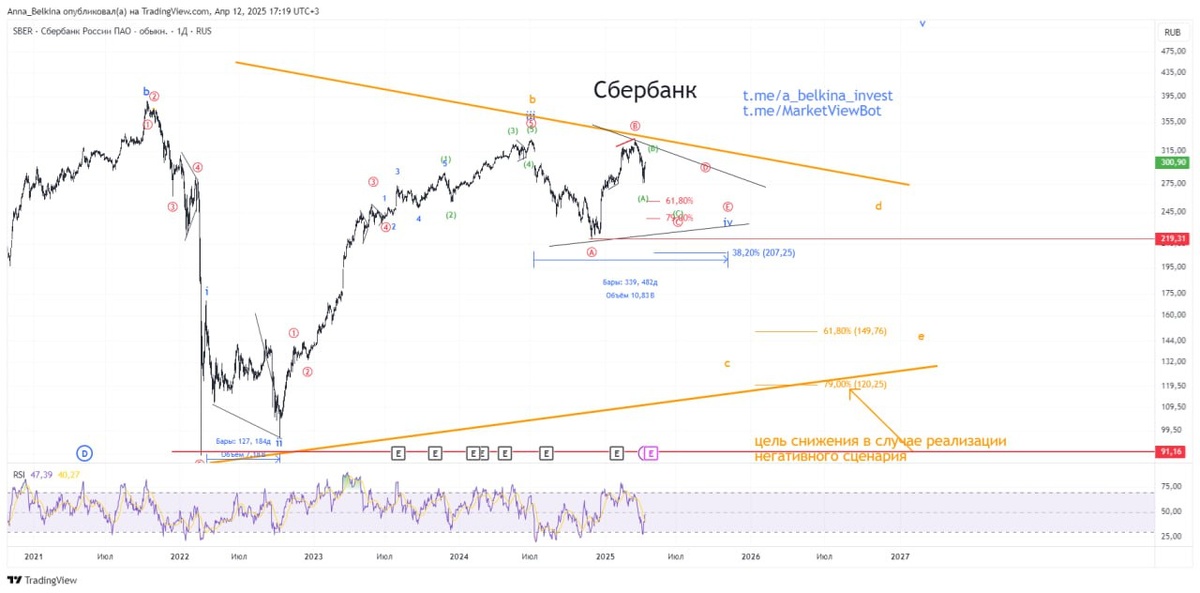 Разметки из видео о голубых фишках росс рынкам https://dzen.ru/media/id/65b8789ff12bfe0796a26941/video-67f23d2ff4fc64265df51bc4 Обновленные графики! Сбербанк #SBER #банки Сбербанк является локомотивом российского рынка. Компания уверенно двигается вперед, являясь лидером во многих сферах. Бизнес-модель компании очень сильно изменилась за последние год. Сбер уверенно развивается, инвестируя и внедряя технологии ИИ. Сейчас технологии ИИ на 100% внедрены в процессы экосистемы Сбера, издержки снижаются, прибыль растет. На уходящей неделе Сбер отчитался о росте чистой прибыли на 11,1% при рентабельности капитала 22,6%. Сбер может направить до 50% прибыли на выплату дивидендов, которые будут рассматриваться в апреле. С технической т.з., на активе с низов СВО развивается импульс, сейчас движение в четвертой волне в виде треугольника с выходом наверх. Подробности в видео! Не является ИИР