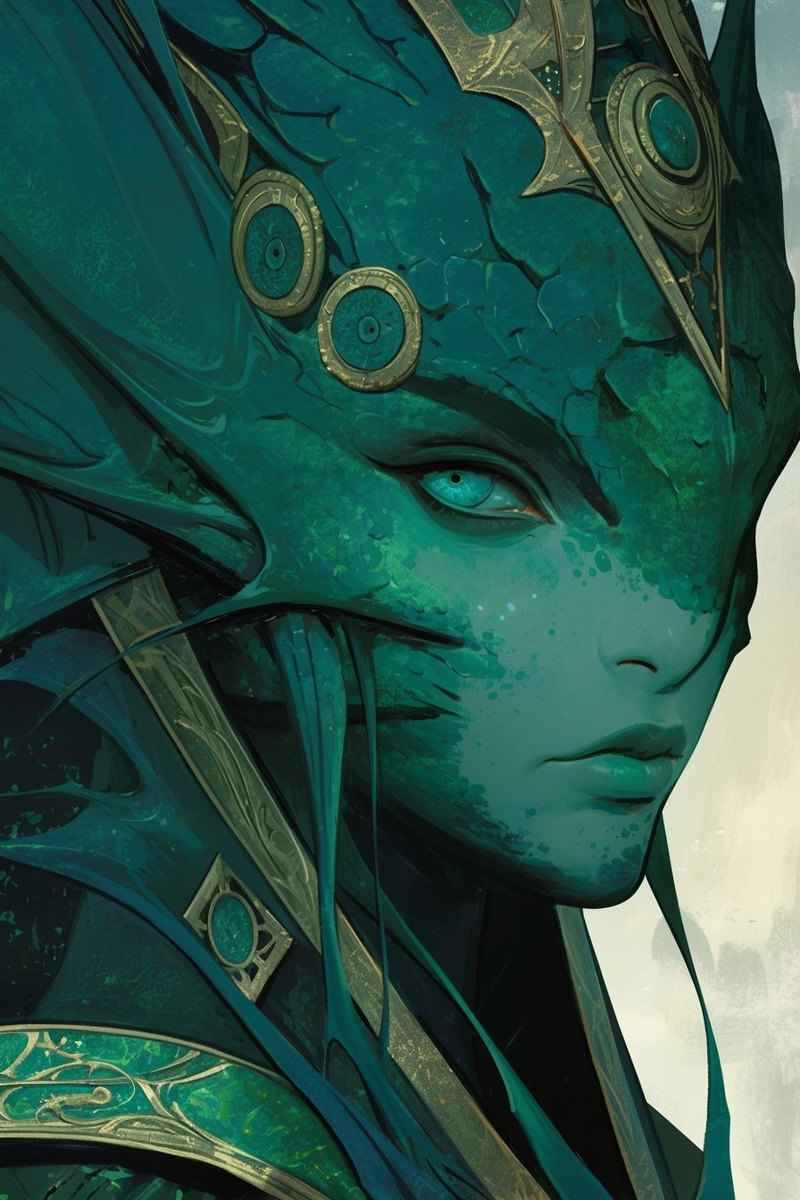 Создано на основе запроса: The girl from nibiru, anthropomorphic fish alien characteristics, large intelligent reptile eyes with gills and fins wrapped in luxurious shimmering alien silk with seaweed aesthetics, sleek beautiful form of perfection, deep blue and green highlights, pointillism style, graphic novel cover, progenitor species, dark background, maximalist, athletic, Sean Phillips, Michael Lark, Noriyoshi Ohrail --- Автоперевод: Девушка из нибиру, антропоморфные характеристики инопланетян рыб, большие умные рептилий с жабрами и плавниками, обернутыми роскошными мерцающими инопланетными шелком с эстетикой морских водорослей, изящной красивой формой совершенства, темно -голубых и зеленых ярких моментов, стиль баллы, норсист, норсист, норсист, норсист, норсист, норсист, норси. Как тебе генерация? 🤔 https://dzen.ru/id/65c0c65c86e4f837c27b24d7 #ИИ #AI #нейросеть #midjourney #art