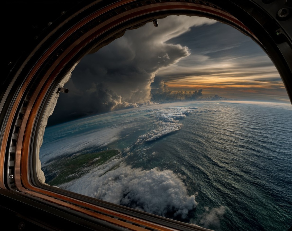 Создано на основе запроса: view from the cupola of the international space station above the pacific ocean