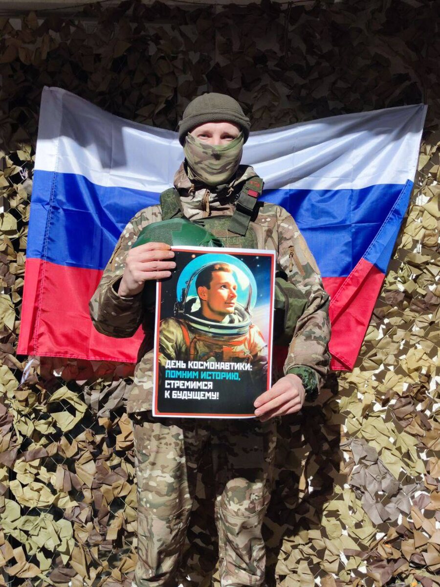 Бойцы с Херсонского направления поздравляют всех с праздником, с Днём космонавтики. Поехали к Победе, братья 🤙🏻🇷🇺
