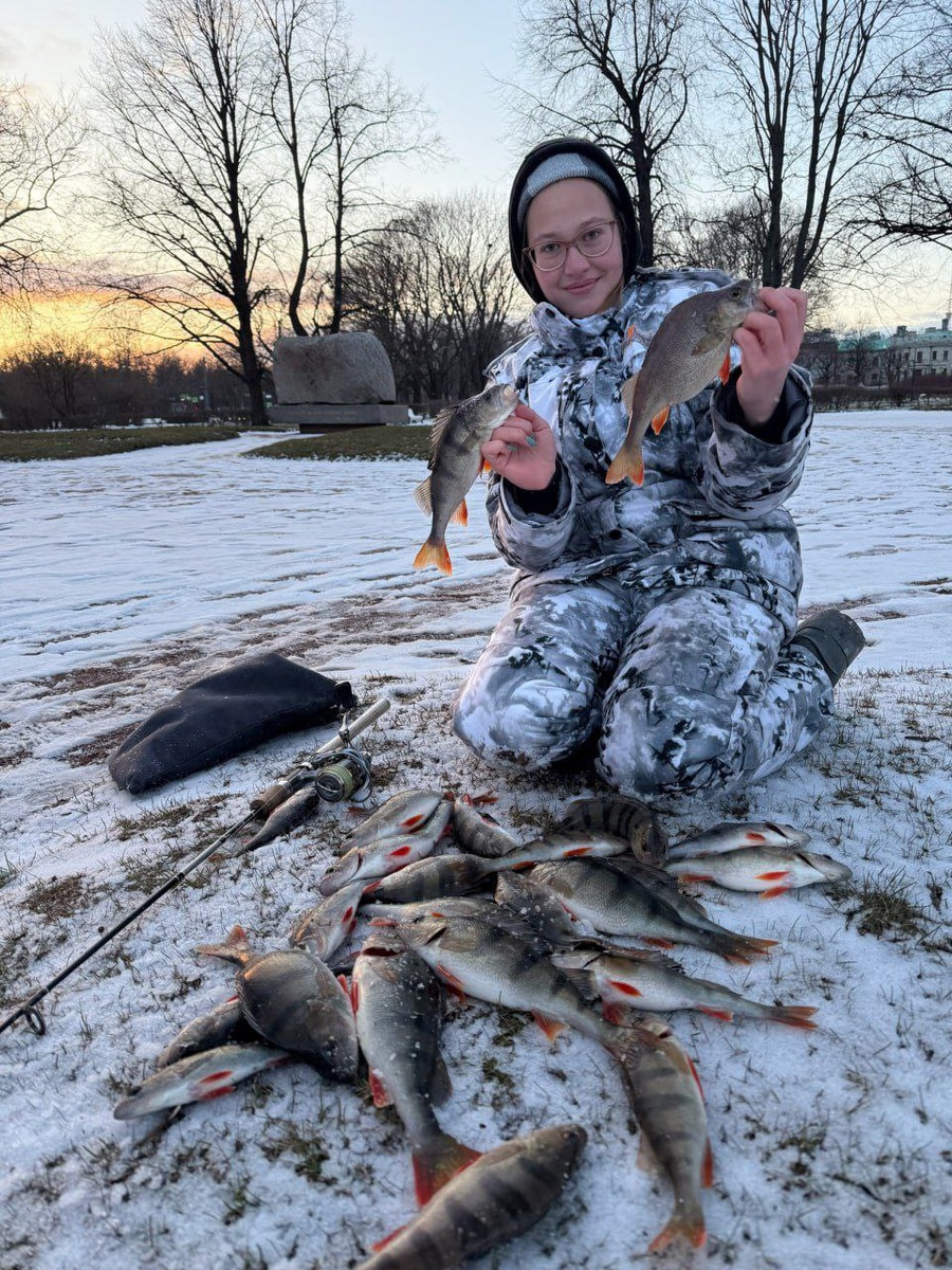 В ветреный апрельский день решили выбраться на Неву в надежде поймать несколько спортивных окушков. Но реальность оказалась намного круче ожидания: попалось 25 окуней пищевого размера, примерно 10 отпущено подрастать. По оснастке работал дроп-шот с 8-граммовой огрузкой и фиолетовой резиной. По способу проводки рулила техника с несколькими поддёргиваниями и паузой 1-2сек. Почти весь день шёл снег и дул северный ветер, но это не мешало рыбе активно кормиться🔥