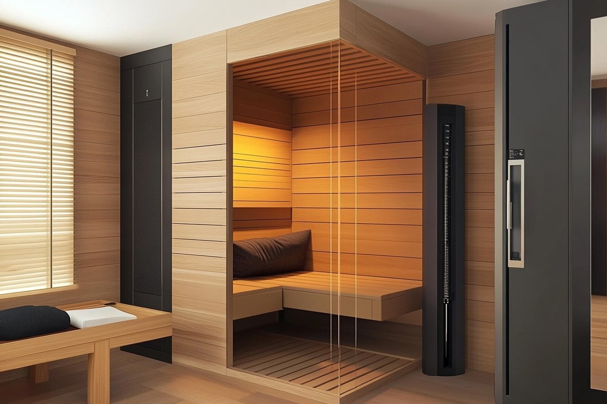 Создано на основе запроса: design a small home gym area with a built-saune in one corner