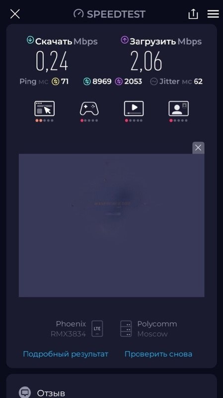 "Скорость мобильного Интернета «Феникс» в Донецке, на Заперевальной (в районе Каравана)