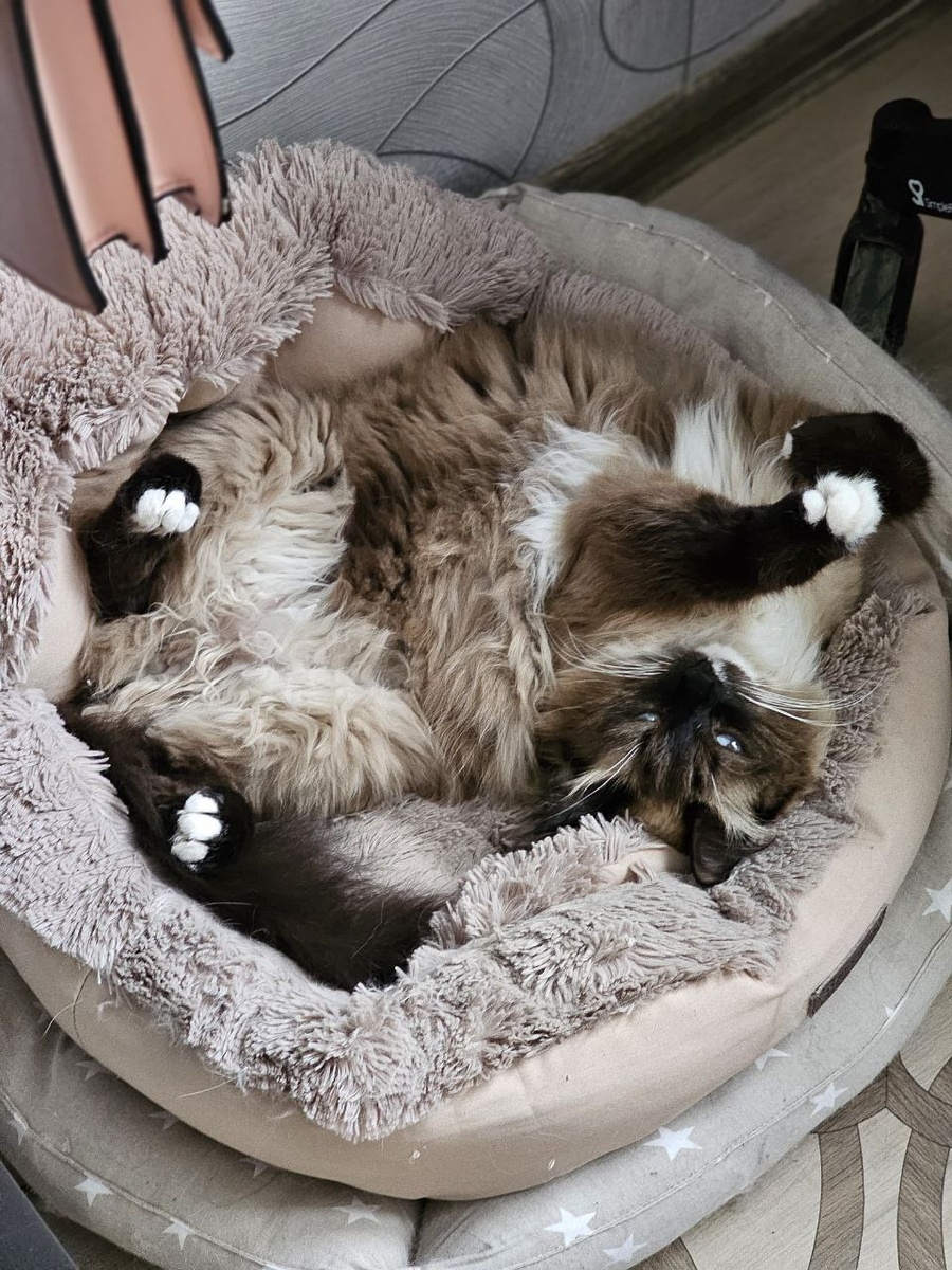 На фото котик Буся, породы невская маскарадная, у него умерла хозяйка.