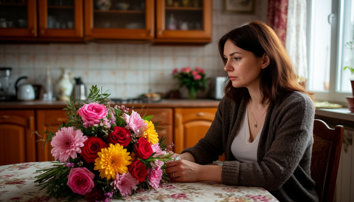 Анна вошла через дверь и замерла на пороге. В центре стола на кухне красовался пышный букет алых роз. Таким сочным, ароматным звучал этот неожиданный подарок, будто сам вечер окрасился в теплые, золотые тона сентябрьского заката. Однако вместо привычной радости, её сердце сжалось в нашем холодным комком. — Неужели снова? — пронеслось у нее в голове, заслышав тихий шорох шагов в коридоре. Сергей всегда отличался тем вниманием, которое порой вызывало больше вопросов, чем ответов. Цветы, подарки, сюрпризы — всё это возвратило её в моменты, которые, несмотря на всю свою изощрённость, оборачивались душевной неразберихой. Анна вспомнила недавние события. Кажется, именно с букета начинались все те разговоры, после которых еды на столе становилось меньше, а автоответчик полон неотвеченных звонков... Её сомнения росли, как и количество ситуаций, когда за пышной формой скрывалось что-то иное. Её вспышка стала заметна даже в моменты тишины, и неудивительно — она стояла, не шевелясь, до тех пор, п