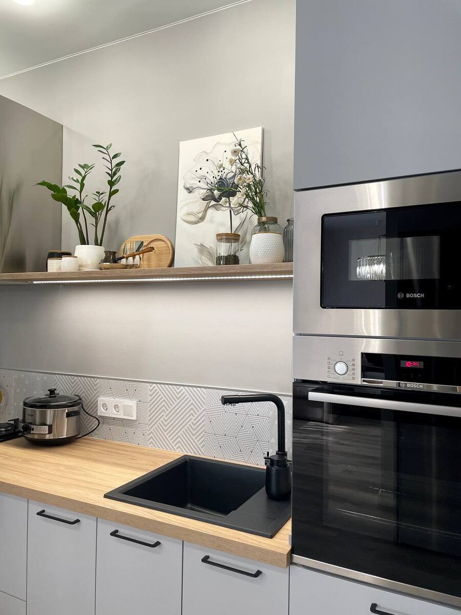 Проект кухни в старой части города на ул. Молодогвардейская В проекте были использованы следующие материалы: ⠀ • Фасад: AGT Supromat | цвет 3021 ICE GREY • Столешница: пластиковая столешница Arpa | цвет декора 4539 Fin Aleve • Фурнитура: Blum и Astill • Сушилка — Dentro ⠀ Дизайнер: Шабаев Артем