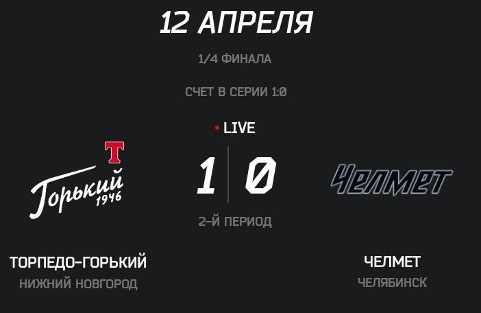 Второй период хоккейного матча между "Торпедо- Горький" и "Челмет" подошёл к концу, счёт не изменился