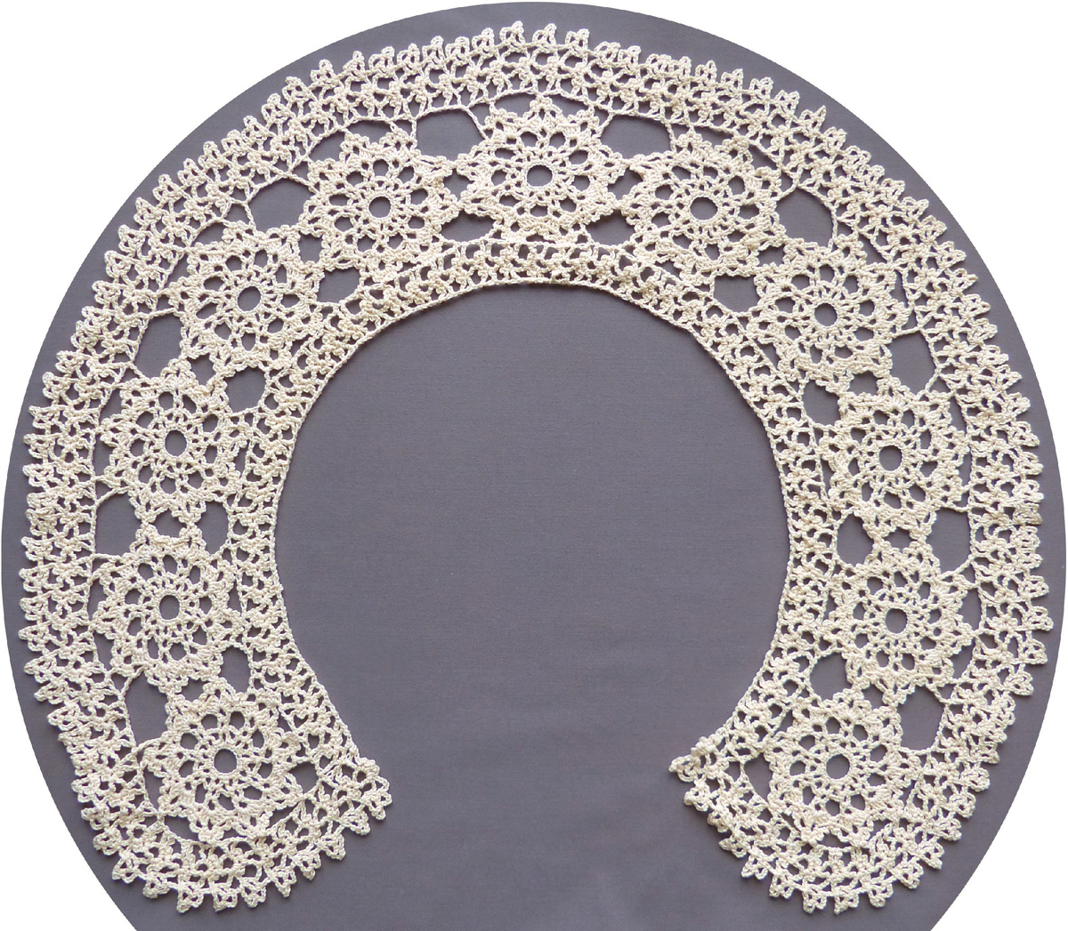 Далее мы двигались к Der Bazar 1862 года. Воротник состоит из отдельно связанных розеток, обрамленных поперечными прошвами, связанными в обоих направлениях.