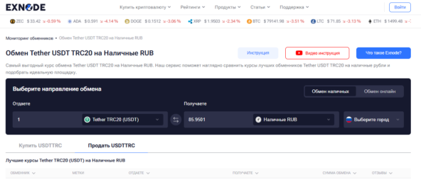 Сайт мониторинга криптообменников Exnode