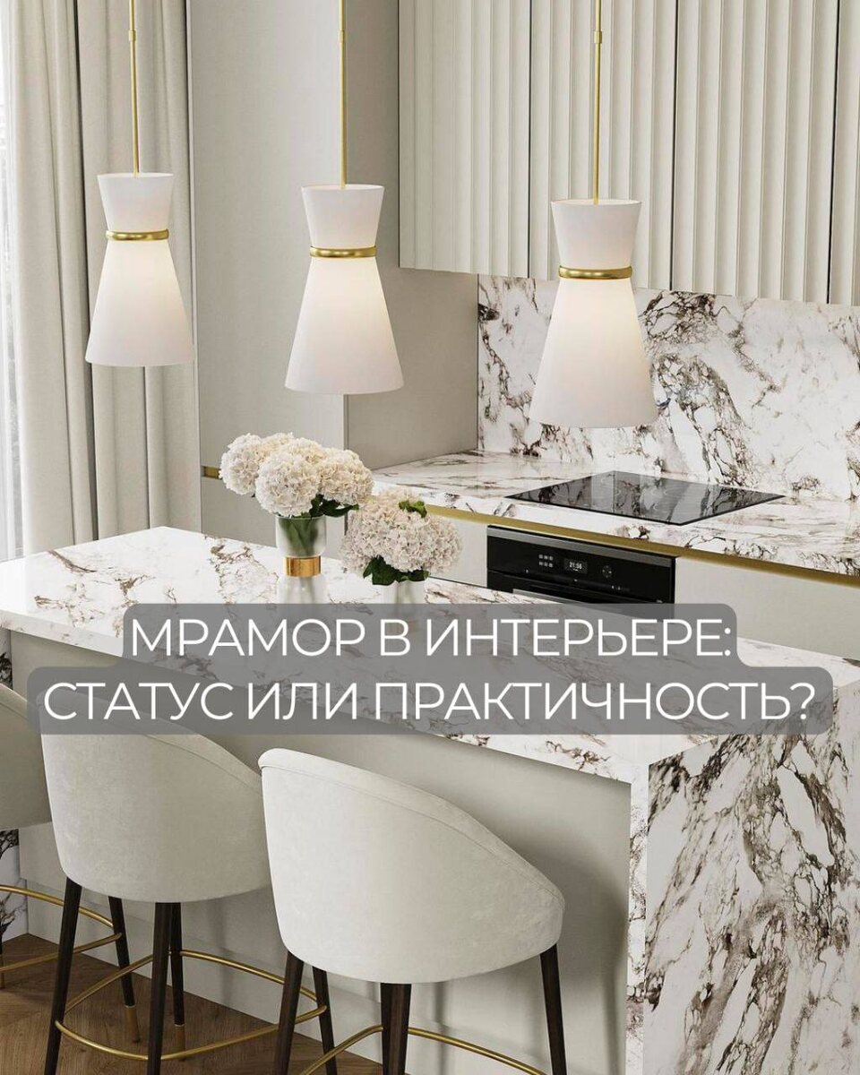 Мрамор в интерьере: статус или практичность? Мрамор — это олицетворение роскоши, но в то же время материал с характером. Да, он долговечен, но требует бережного обращения. Кислоты и жиры могут оставлять следы, а полированная поверхность теряет свою идеальную гладкость от одного случайного капли лимонного сока. Однако это не повод отказываться от него! Правильная обработка делает мрамор более устойчивым, а если обновлять защитное покрытие, он будет служить долгие годы. В ванных комнатах, душевых зонах и местах без агрессивного воздействия — идеальный выбор. В Италии, например, мрамор повсюду, и никто не беспокоится о небольших следах времени. Камень красиво стареет, приобретая свою историю. А если нужна максимальная практичность — есть альтернативы. Гранит и кварцит выдерживают любые испытания, не боятся кислот и жира, поэтому идеально подходят для кухонных поверхностей. Главное — осознанно выбирать материал под задачи. А как вы относитесь к мрамору в интерьере? Планируете обновлени